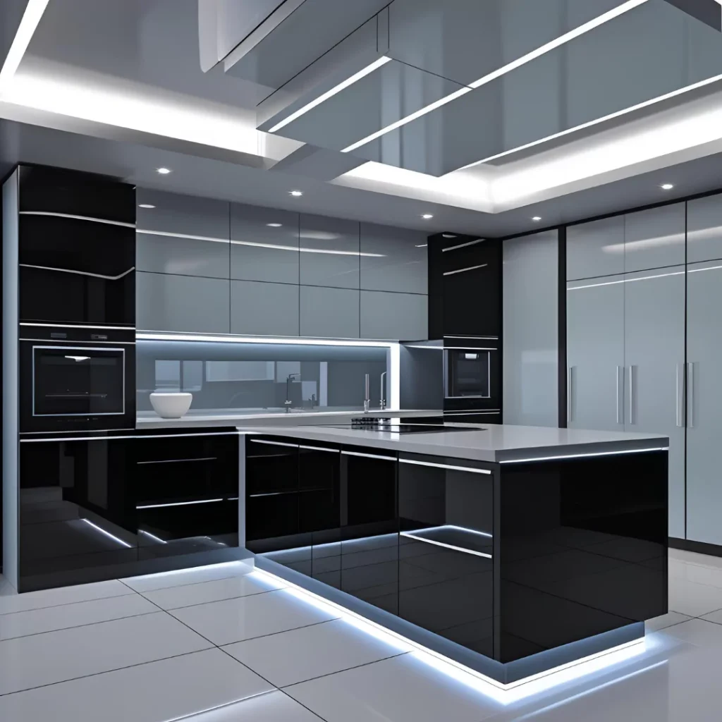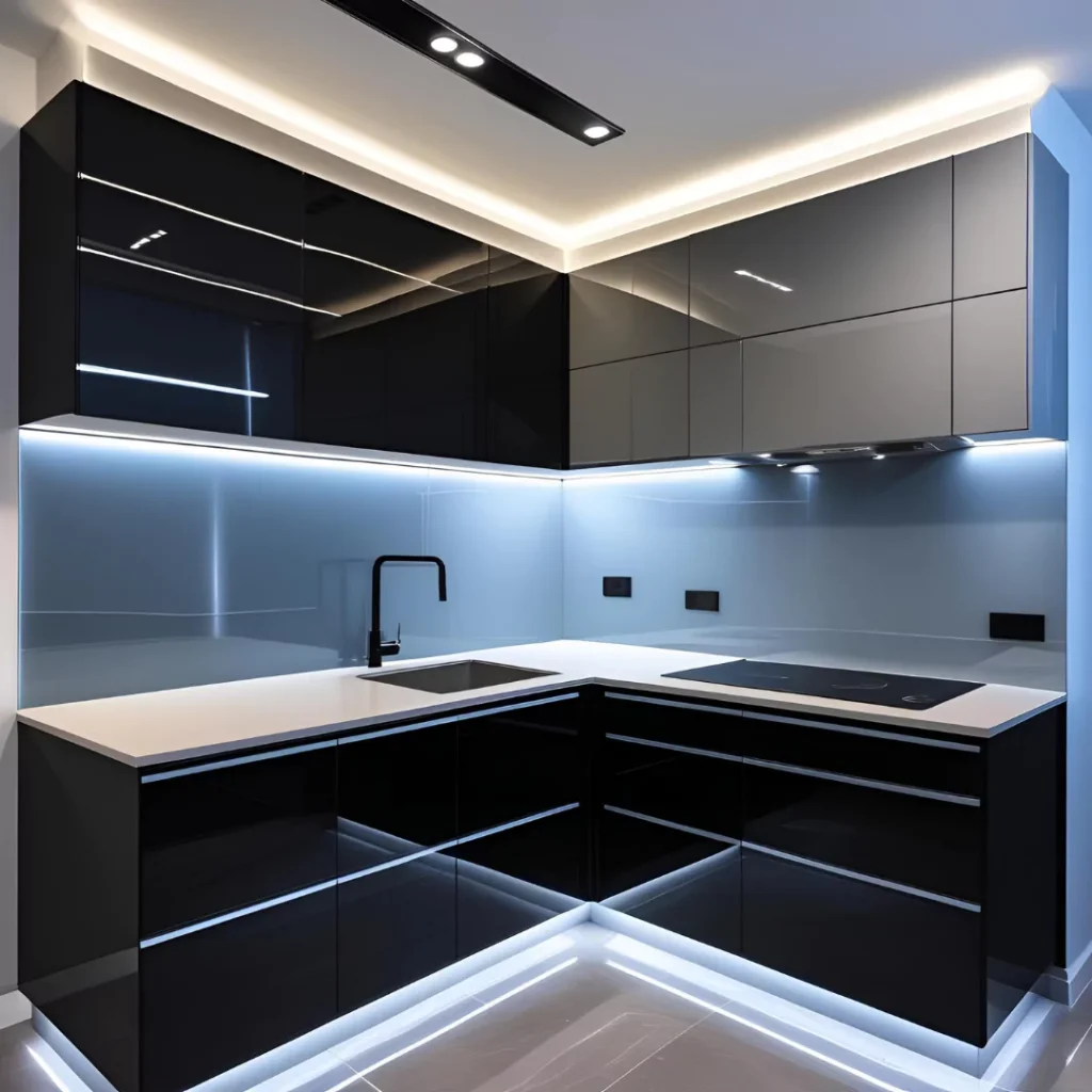 Opt for flat-panel, handleless cabinets to achieve a sleek, modern appearance and reduce visual clutter.
