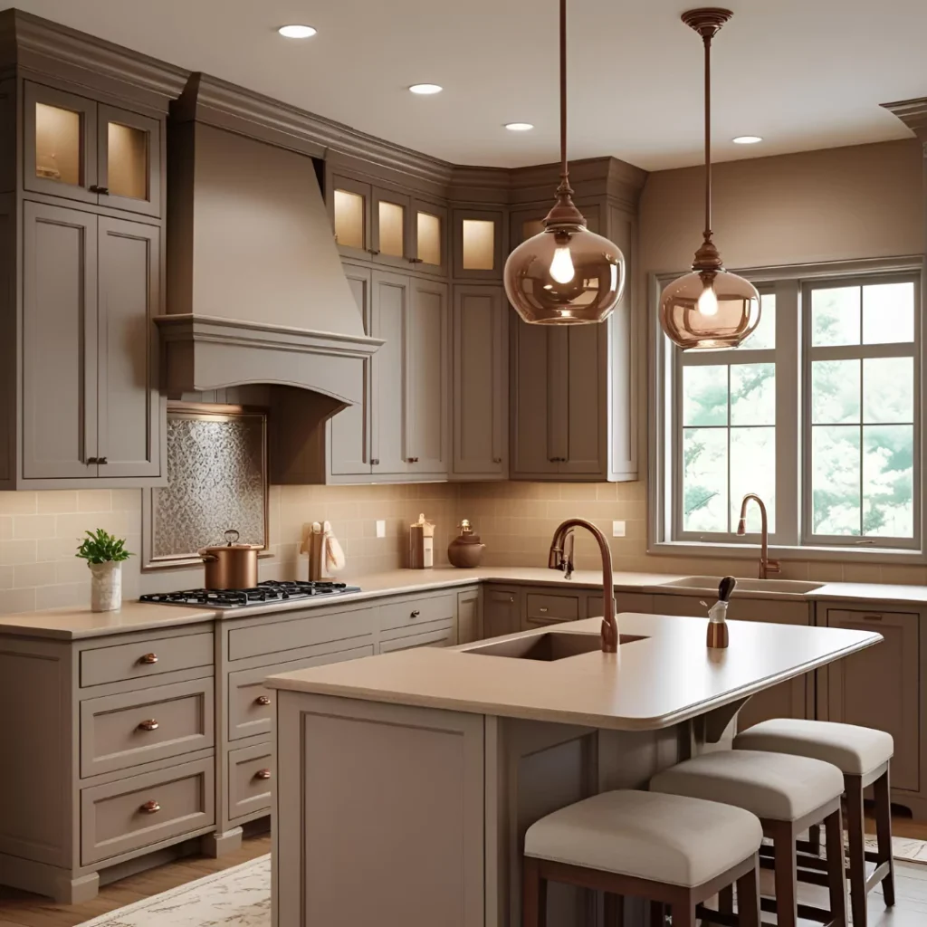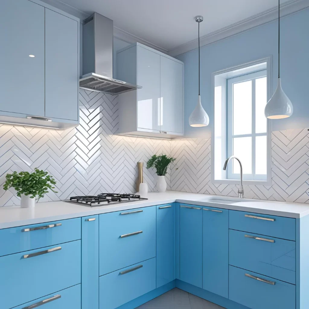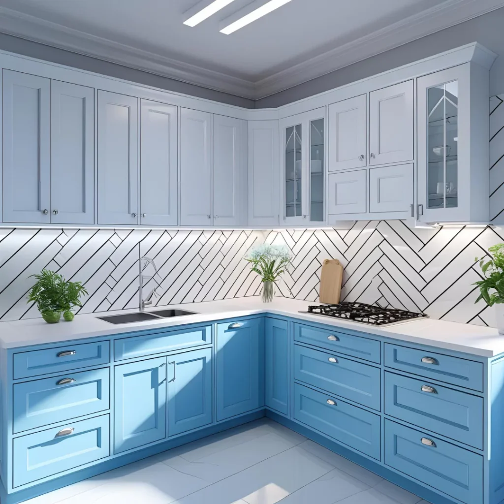 Stick to whites, grays, or soft beige tones for walls, cabinets, and countertops to create a calm and cohesive look.