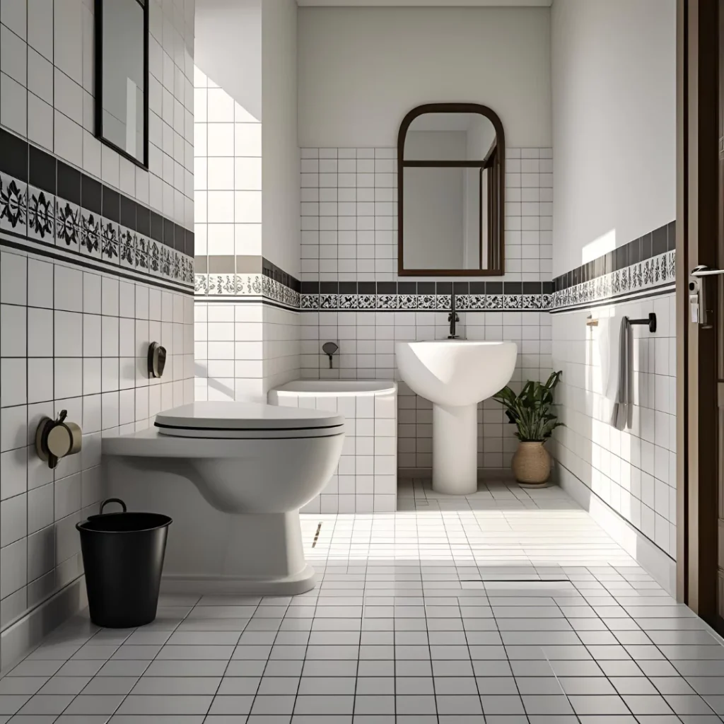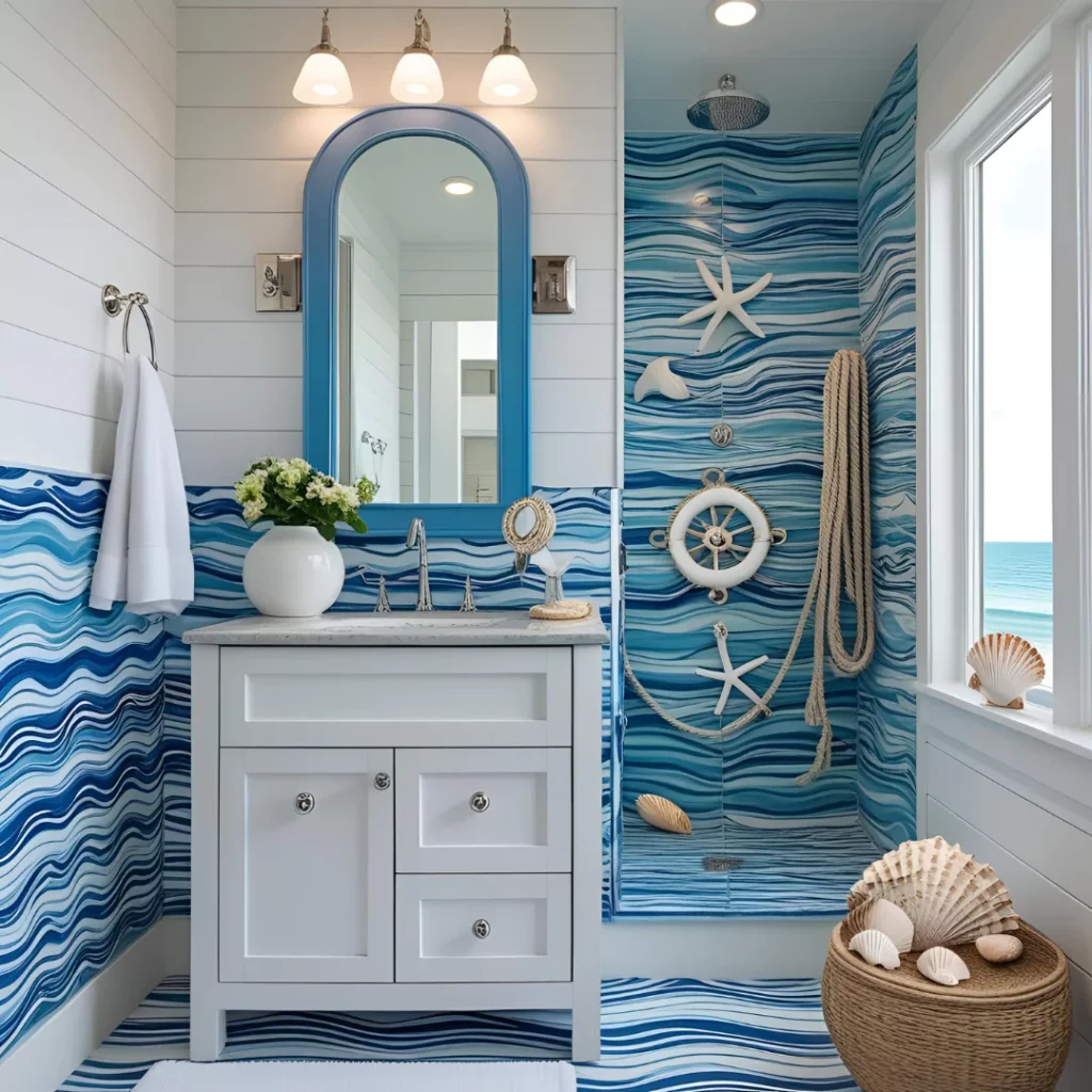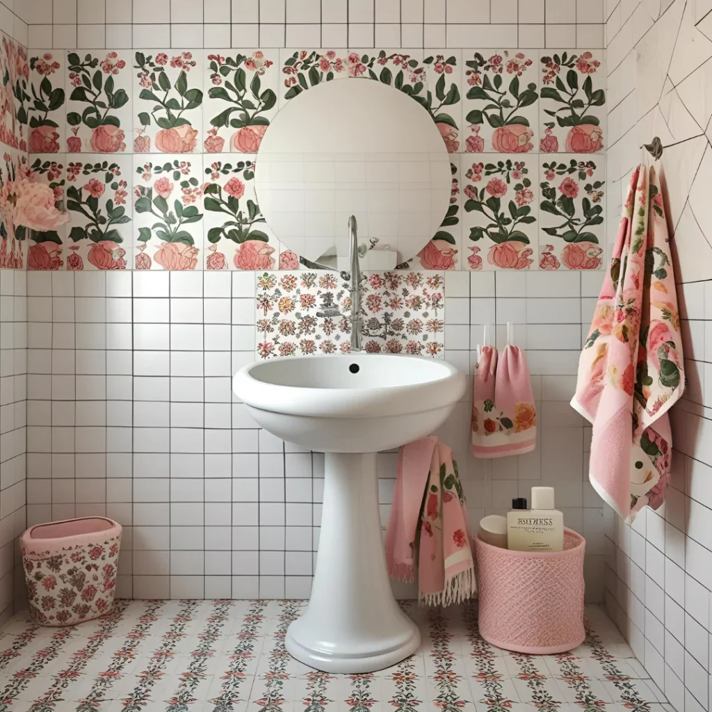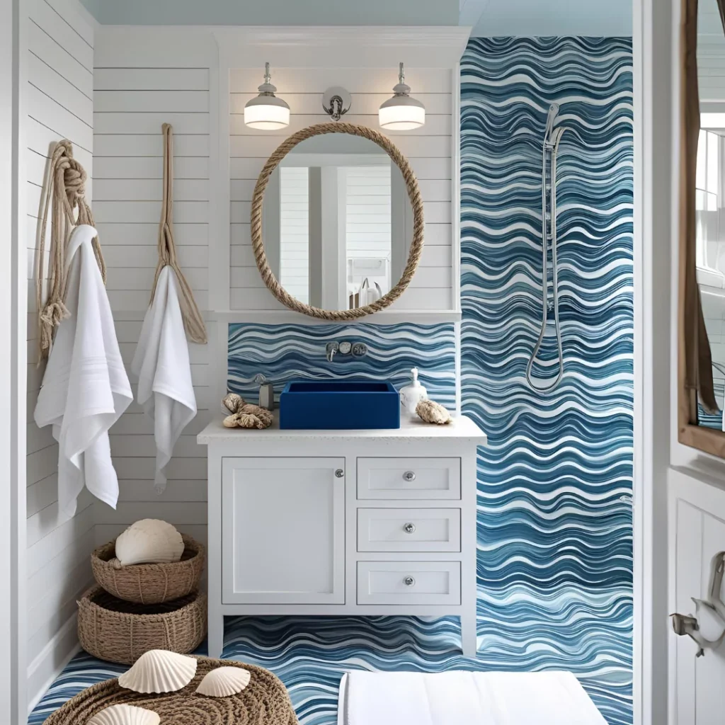 High-contrast or hand-painted wallpapers with abstract, floral, or geometric designs instantly elevate your bathroom’s personality.