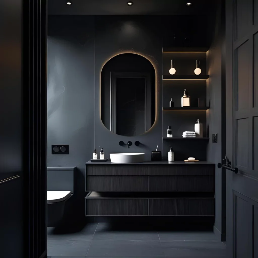 Floating vanities with hidden drawers, recessed shelving, and wall niches help keep the space tidy and modern. Organization is just as important as aesthetics in 2025.