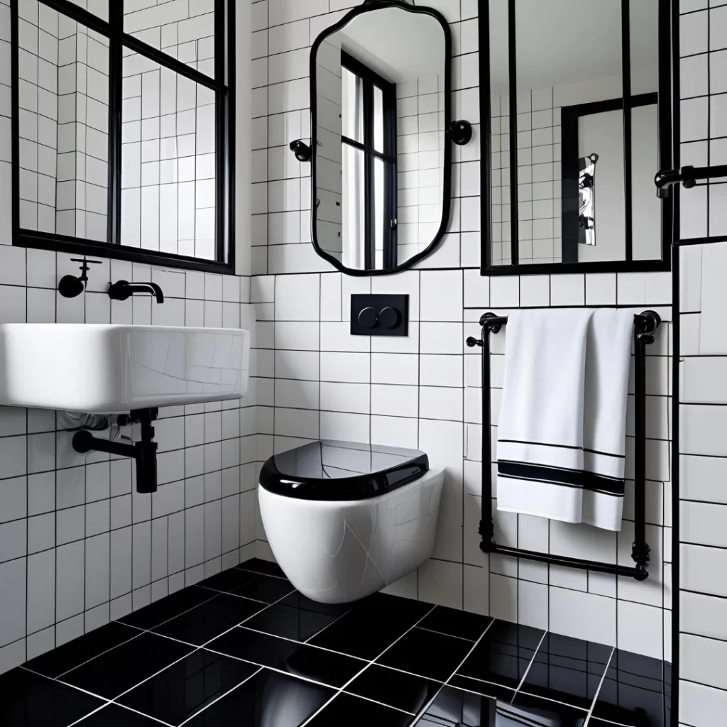 The ultimate high-contrast combo. Use black hex tiles on the floor with white walls and fixtures for a bold, timeless aesthetic.